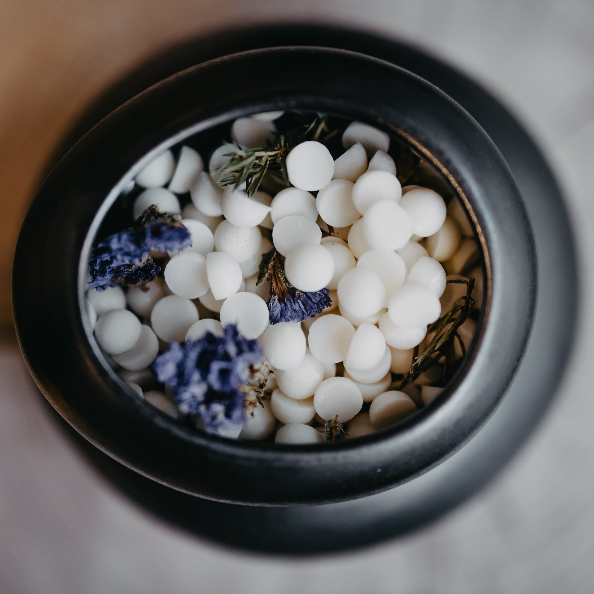 Place wax melts or scented soy wax rounds in a wax warmer to have an intensive fragrance. Put a tea- light candle underneath to start melting the wax. The intensity of the fragrance depends on the amount of wax melts used at one time.