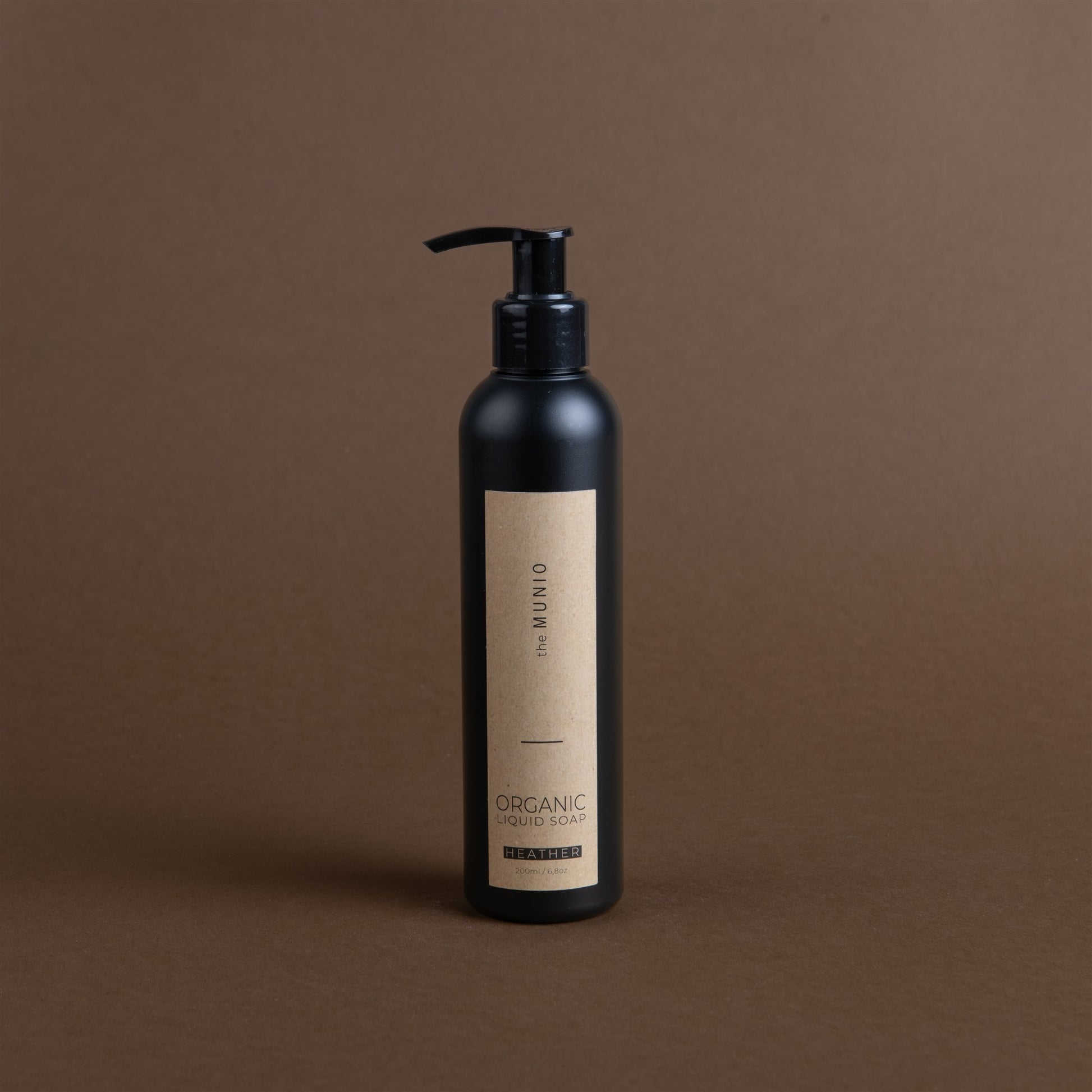 Heather organic liquid soap in 200ml black bottle