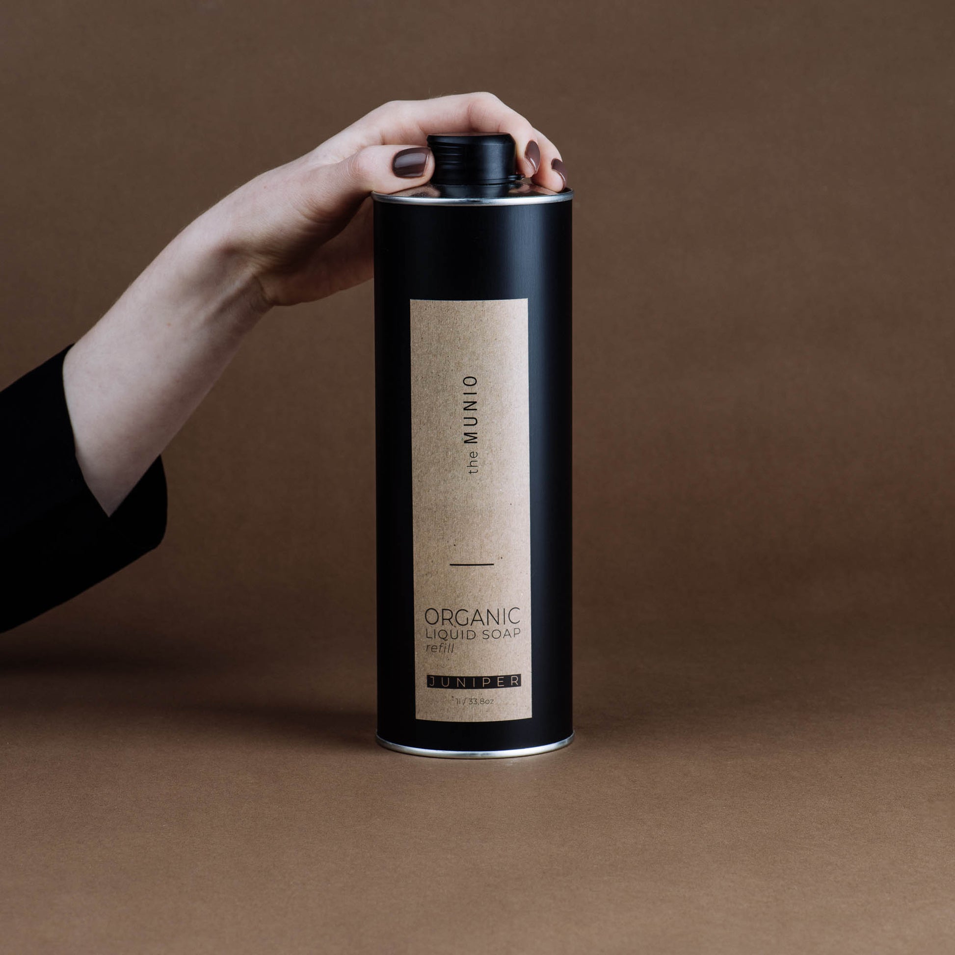 Refill the MUNIO liquid soap 200ml glass or plastic bottle 5 times. Enjoy the uplifting scent of juniper as it gently lingers on your skin.