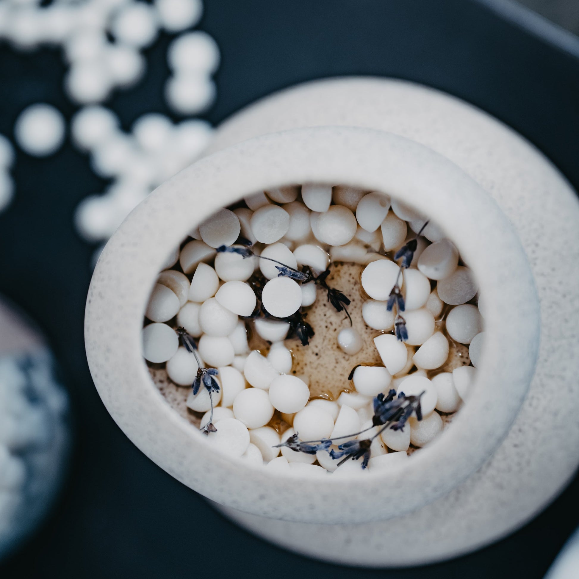 The Munio Lavender wax melts naturally freshen your space with a calming floral fragrance, offering a beautiful and sustainable way to add long-lasting scent to drawers, closets, or rooms—with the option of a more intense aroma in a wax warmer.