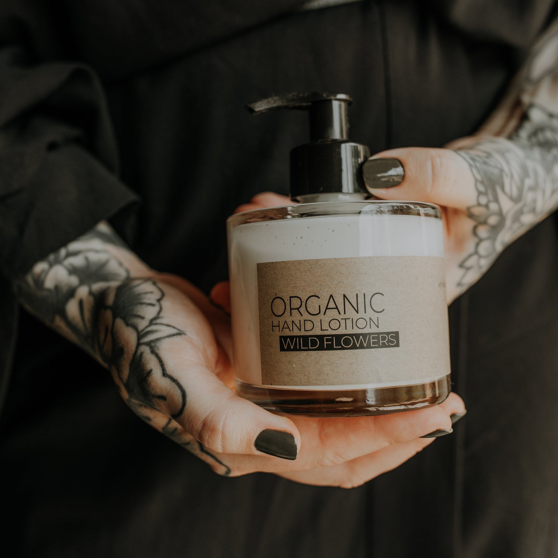 Using Wild Flowers organic hand lotion in a glass bottle is a sustainable choice because glass is endlessly recyclable without loss of quality, reducing reliance on single-use plastics and minimizing environmental impact. The lotion is made with organic, biodegradable ingredients that are gentle on the skin and safer for the environment.