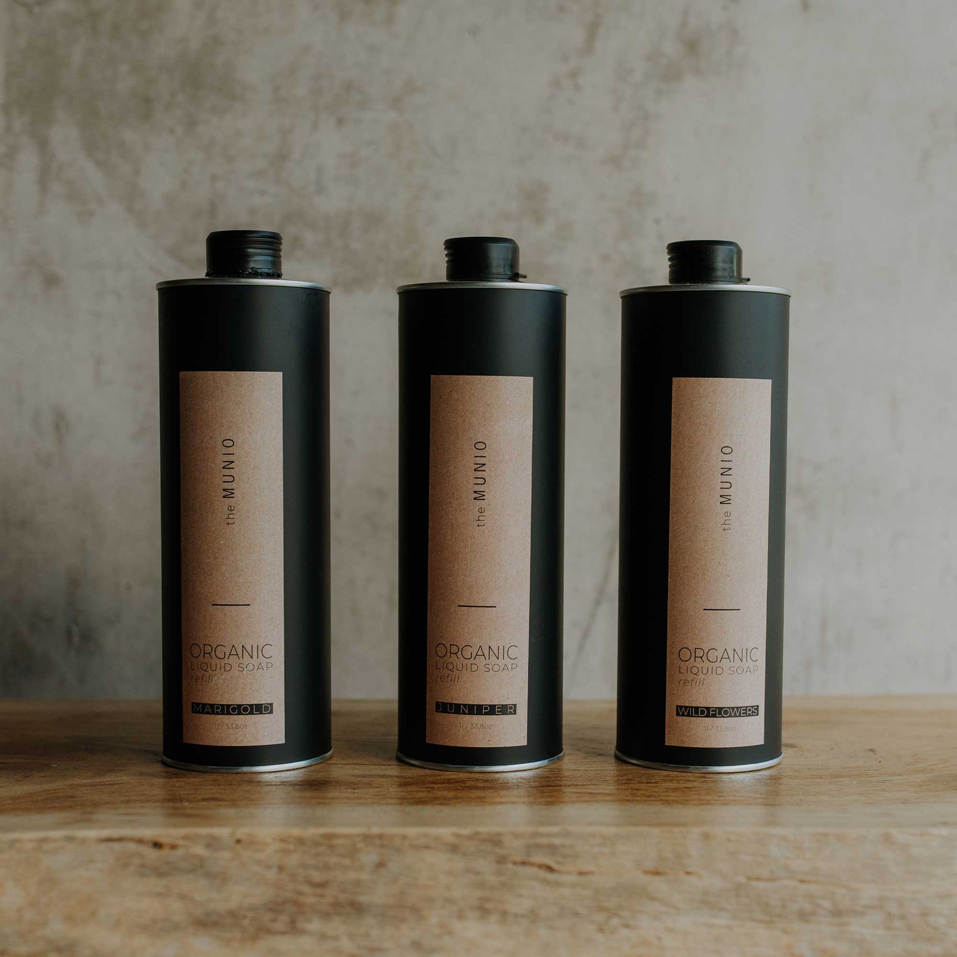 Refill the MUNIO liquid soap 200ml glass or plastic bottle 5 times. Enjoy the uplifting scent of wild flowers as it gently lingers on your skin.