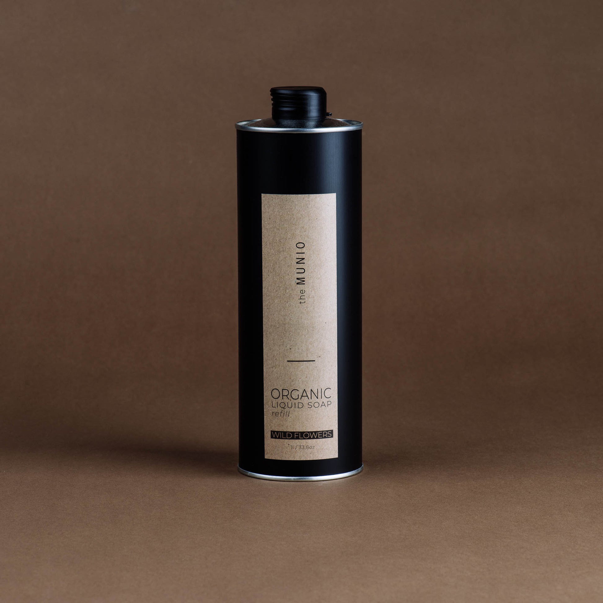 Gently foaming liquid soap made from organic coconut and sunflower oils. Hand poured in metal bottle and fragranced with natural wild flowers fragrance. Refill the MUNIO liquid soap 200ml glass bottle 5 times.
